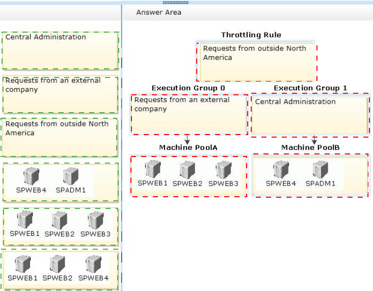 How should you configure Request Manager? (To answer, drag the appropriate elements to the correct positions in the answer area. Each element may be used once, more than once, or not at all. You may need to drag the split bar between panes or scroll to view content.)