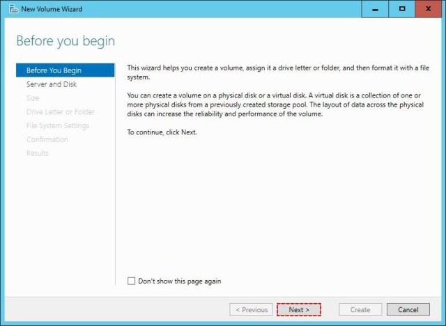 First we create a Storage Pool. We specify which disks should be included in the storage pool.