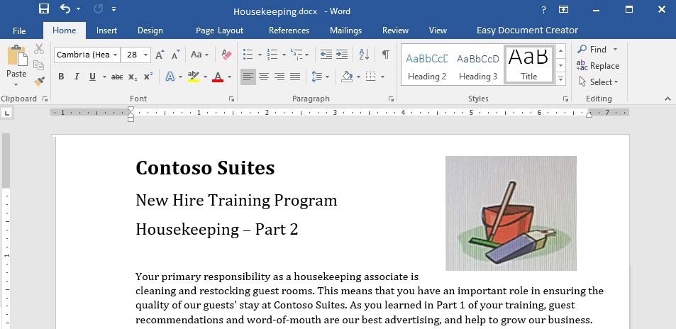 You are helping to write training program modules for Contoso Suites. You are editing the second module for housekeeping associates.