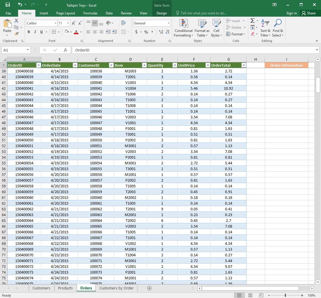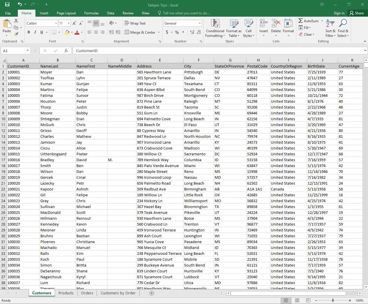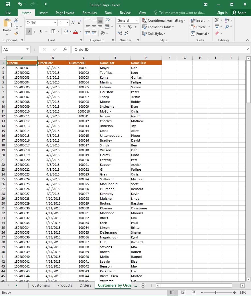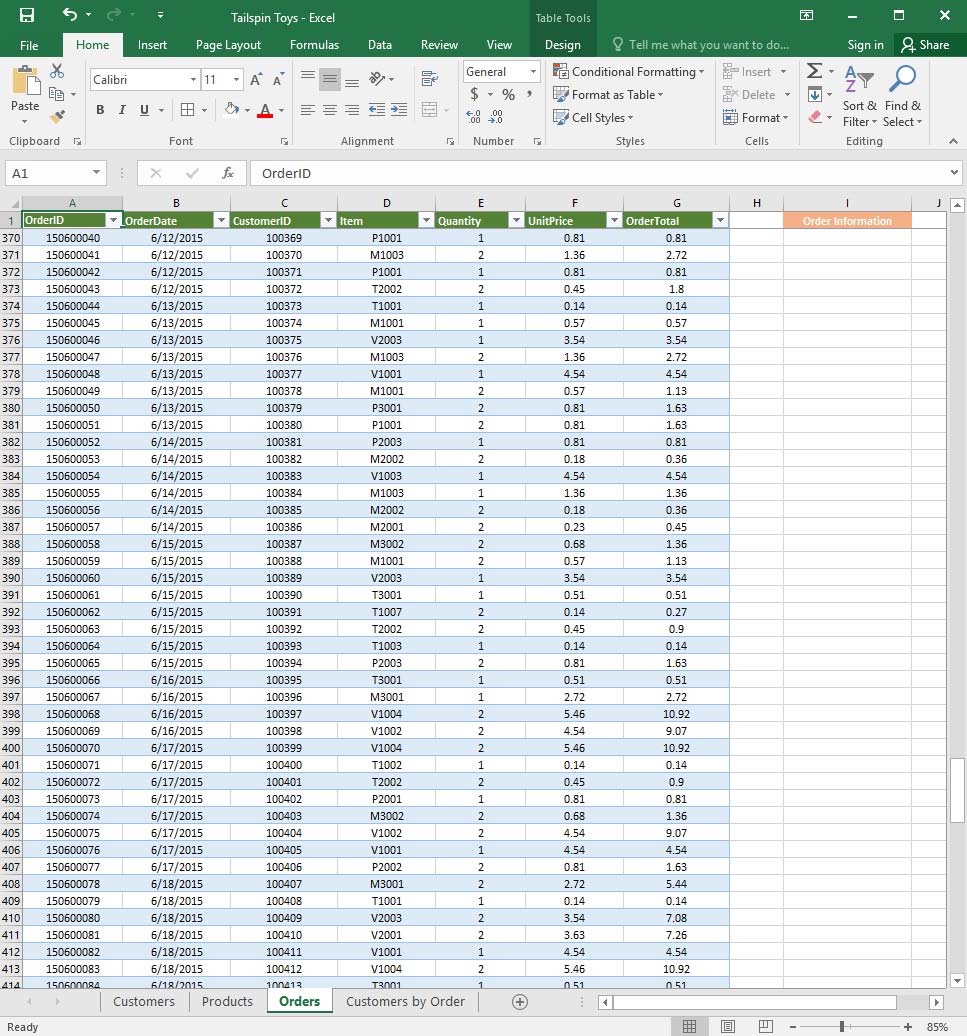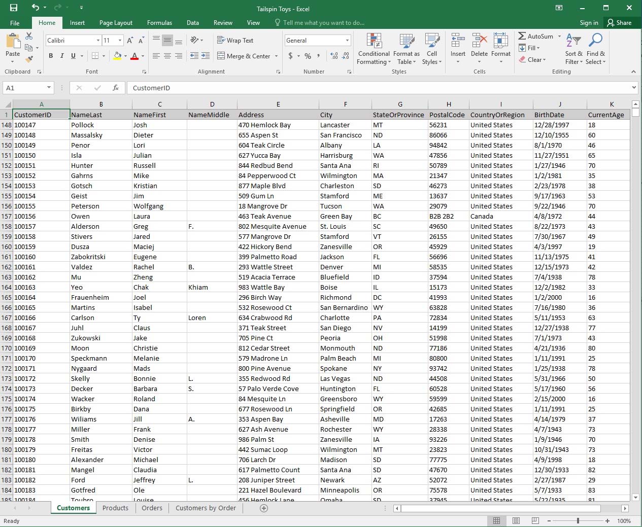 1. Select a cell in the "CountryOrRegion" field on the "Customers" worksheet.