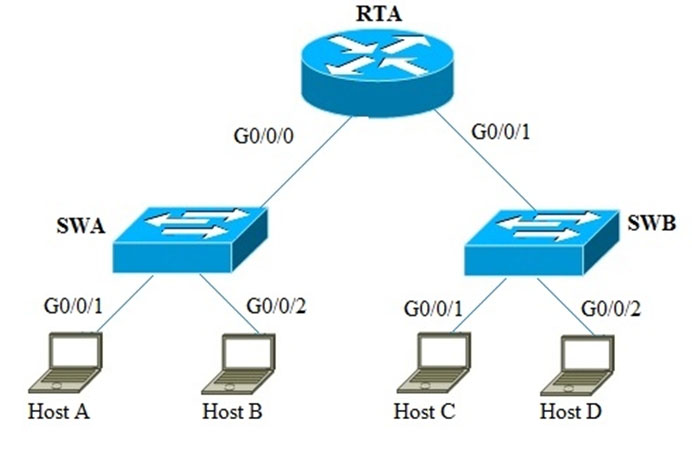 Host A wishes to send data to host C, and generates an ARP request to obtain the destination MAC address.