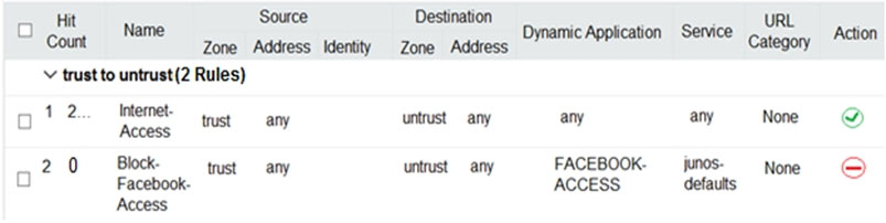 Which two statements are true about security policies in the factory-default configuration of an SRX340? (Choose two.)